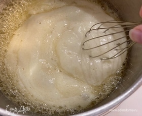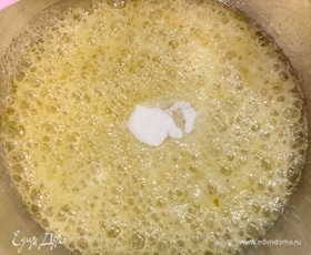 Сахар растопится, и масса начнет закипать. Не снимая с плиты, добавить соду и активно мешать венчиком.