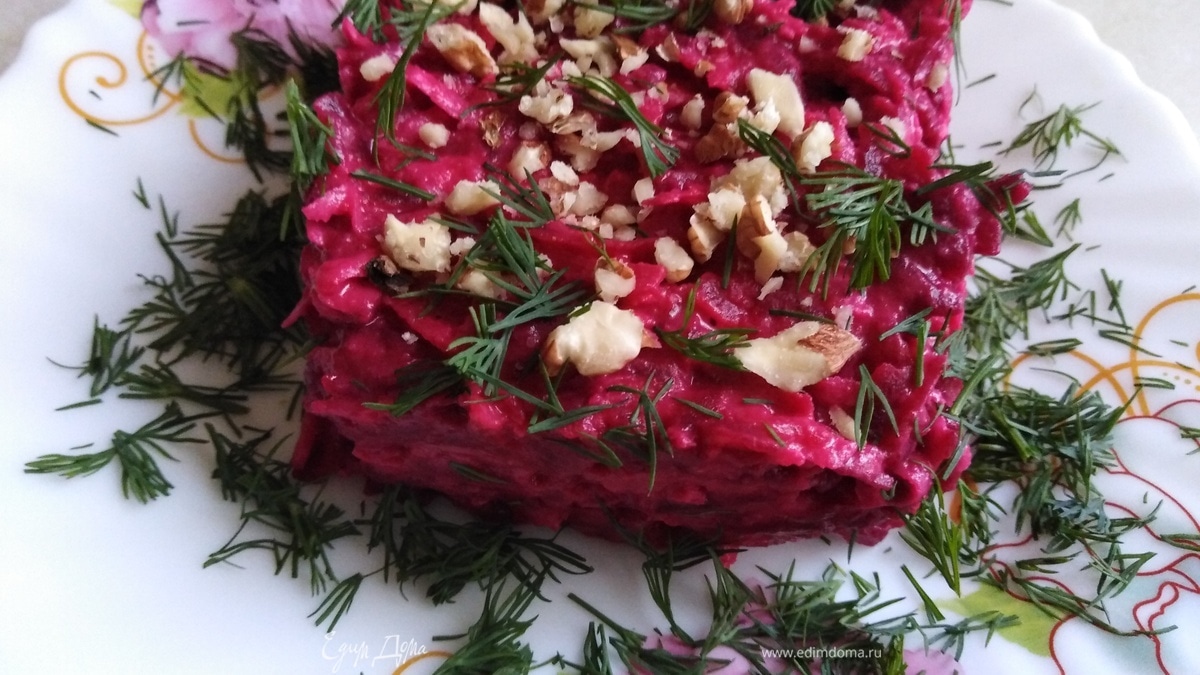 Салат из свеклы с белой фасолью и черной редькой