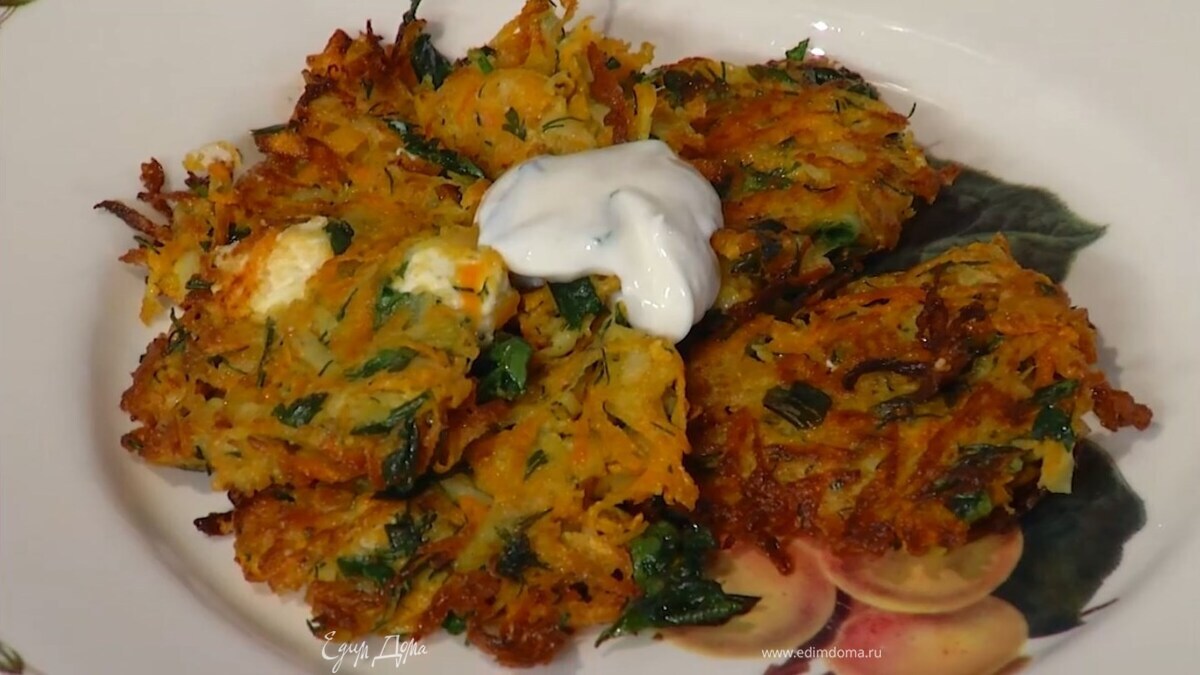 Драники из моркови и сладкого картофеля с фетой