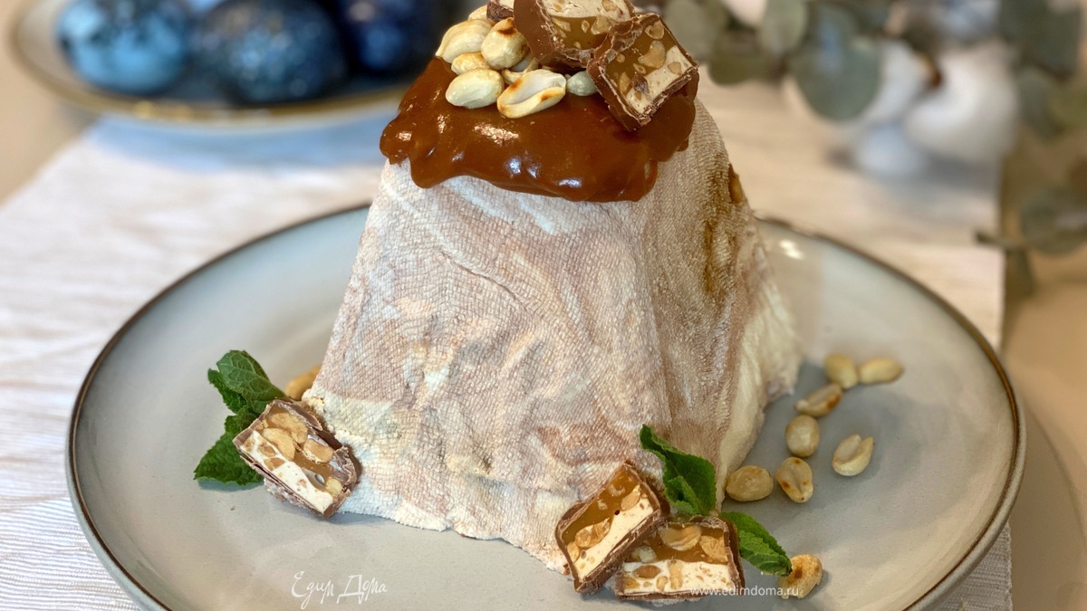 Приготовить на пасхальный праздничный стол можно как традиционные блюда по старинным семейным рецептам, так и современные угощения. Например, пасху «Сникерс» с карамелью и арахисом. Вкус любимого шоколадного батончика порадует детей и удивит взрослых. Вы можете использовать готовую карамель или приготовить ее самостоятельно. Для пасхи понадобится специальная форма — пасочница.