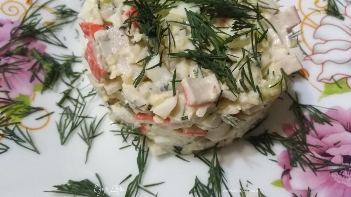Нарезать крабовые палочки, вареные яйца и очищенный от кожицы огурец. Посолить, добавить перец. - Шаг 2