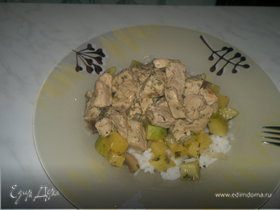 Рис со свининой и капустой, тушенный в молоке
