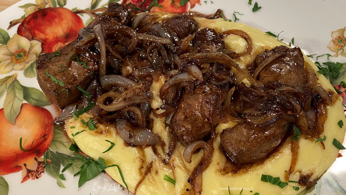 Так готовят говяжью печень в Венеции — мне этот рецепт очень нравится. Главная ошибка тех, у кого не получается пожарить печенку, — то, что они держат ее на сковороде слишком долго. Я не призываю есть сырую печень, но она должна провести на огне ровно столько времени, чтобы стать мягкой, нежной и сочной. Что касается карамельного лука, это лук не сгоревший и не хрустящий, а слегка зажаристый.