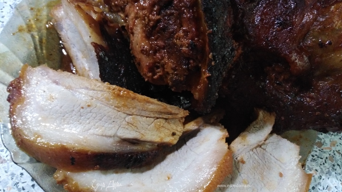 Рульку обмазать приготовленным соусом. Выложить в пакет для запекания. Оставить мариноваться на 12 часов в холодильнике. - Шаг 5