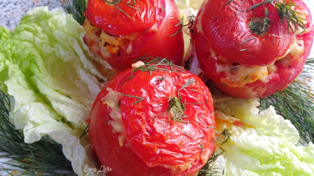 Нафаршировать помидоры подготовленной начинкой. Выложить в застеленную фольгой посуду. - Шаг 9