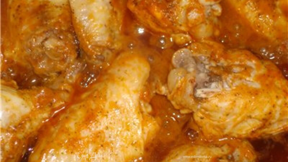 - Шаг 1Маринуем крылышки в смеси томата, соевого соуса, чеснока мелко рубленного и специй.Достаем крылишки из маринада, и маринад отставляем пока в сторону.Обжариваем крылышки на хорошо разогретом масле. До золотистой корочки, теперь заливаем наш маринад в сковороду, и тушим на небольшом огне еще какое то время. Все. Наши крылышки готовы!!! Приятного аппетита!!!