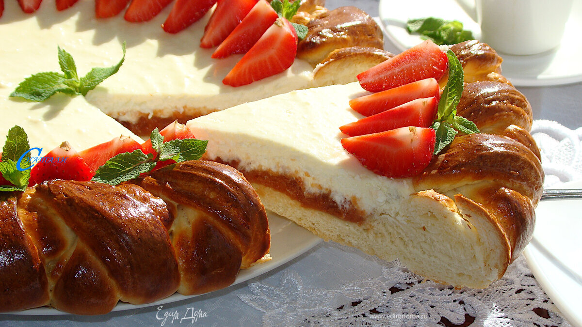 Ватрушку остудите до комнатной температуры и украсьте по своему вкусу. Теперь можно подавать на стол. Приятного аппетита!