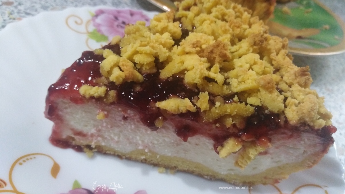 Творожно-кукурузный пирог с малиновым желе