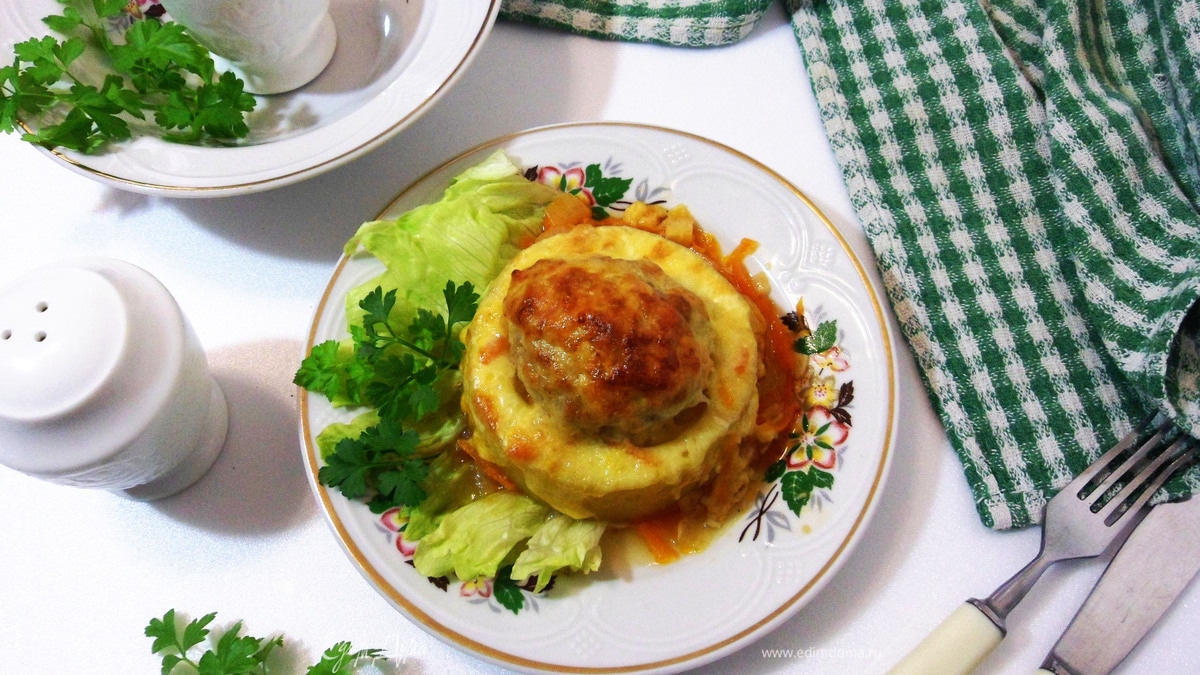 Подготовить основные ингредиенты: помыть и почистить лук с морковью, очистить от кожицы кабачок среднего размера и нарезать его шайбами высотой 3–4 см, приготовить мясной фарш.