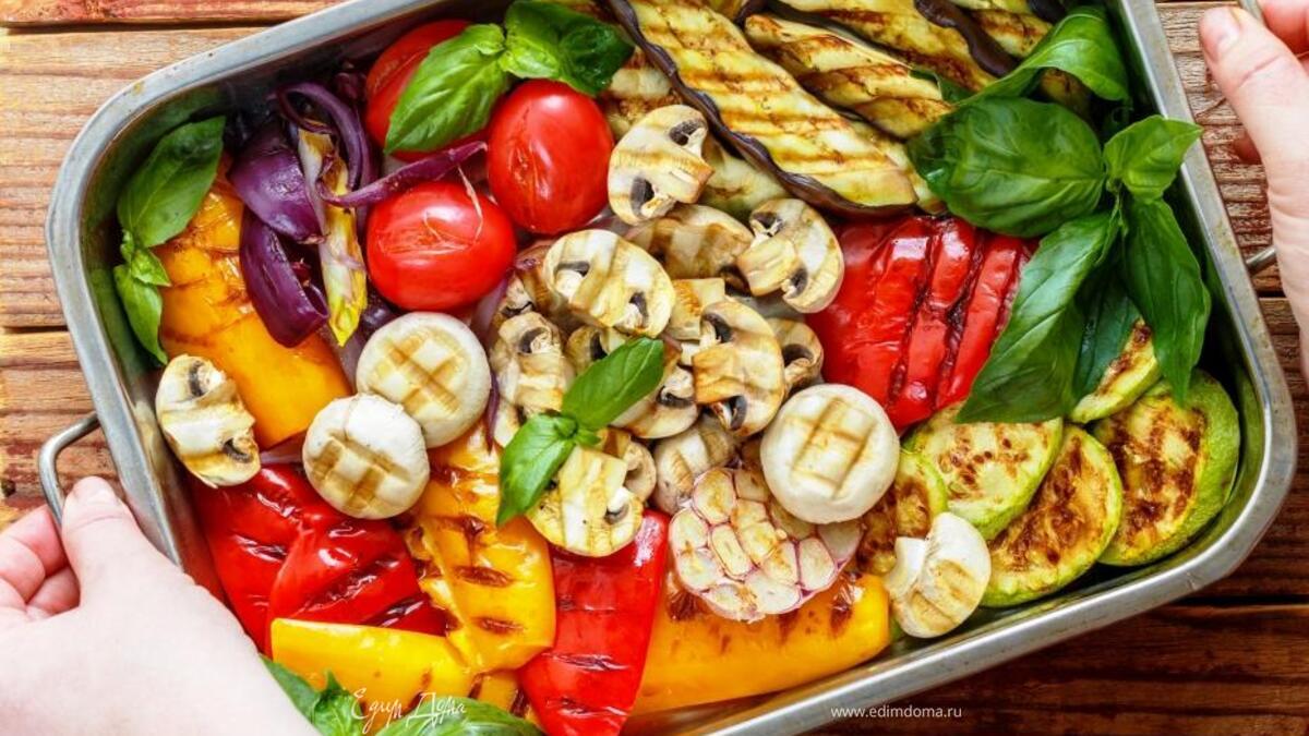 Мелкие томаты наколоть шпажкой. Одну головку чеснока разрезать поперек. Вторую очистить и пропустить зубцы через пресс. Соединить оливковое масло, чеснок и лимонный сок, приправить солью и перцем. - Шаг 4Смазать пряным маслом все подготовленные овощи и грибы и оставить, пока готовятся угли. Разжечь угли в мангале или котле барбекю: они должны хорошо прогореть и покрыться белым пеплом. Прокалить и смазать маслом решетки. Жарить овощи на средних углях, часто переворачивая, примерно 7–10 минут. Грибы и помидоры жарить только с одной стороны. Украсить свежим базиликом. Подавать овощи как самостоятельное блюдо или как гарнир к мясу и рыбе. Приятного аппетита!
