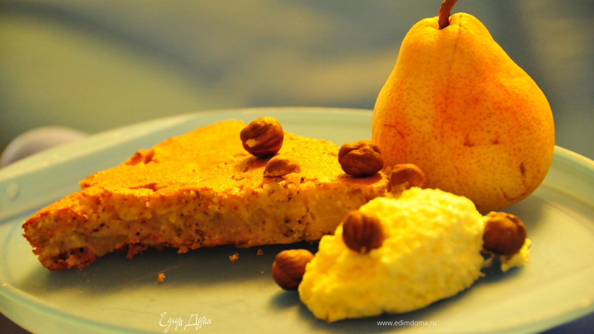 - Шаг 1Орехи обжарить без масла на сковороде с тефлоновым покрытием. Груши вымыть, разрезать каждую на 4 части, удалить сердцевину и нарезать кубиками. Сразу сбрызнуть соком лимона, чтобы мякоть не потемнела. Творог смешать со сливками, яичными желтками и сахаром, затем добавить манную крупу, груши и орехи. Все тщательно перемешать. Нагреть духовку до 200 градусов. Смазать форму маслом и засыпать манкой. Выложить массу, разровнять и поставить в духовку. Как только верх подрумянится - накрыть фольгой, чтобы не подгорело, и оставить в духовке еще на 5 минут. Затем вынуть и дать запеканке немного остыть. Разрезать на порционные куски, посыпать сахарной пудрой. К десерту подайте сметану (лучше домашнюю) или джем. Наслаждайтесь!