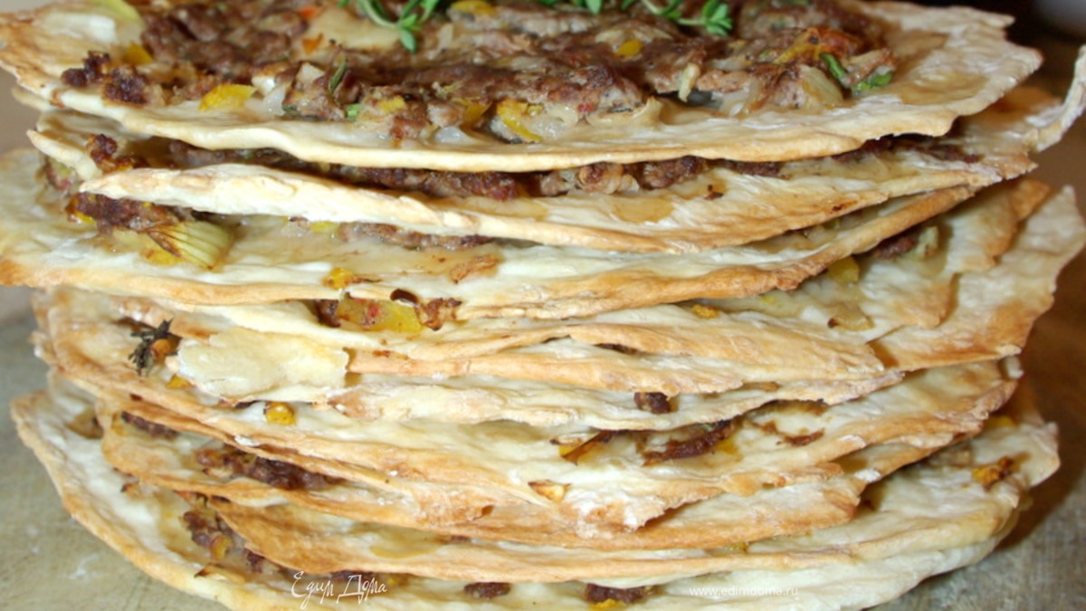 - Шаг 1Смешать сухие дрожжи с мукой, сахаром и солью, добавить воду, вымесить тесто до мягкости. Оставить в теплом месте на 40 минут для того, чтобы подошло. Разделать на 12 шариков, шарики оставить еще на полчаса для расстойки. Раскатать каждый шарик в тонкую лепешку. Лук, помидоры, перец, мясо, приправы сложить в блендер, измельчить. Противень смазать оливковым маслом, выложить лепешки, распределить по ним тонким слоем начинку. Печь при температуре 200 градусов минут по 7 - 8. Сверху тоже можно сбрызнуть маслом. Состав начинки может варьироваться.