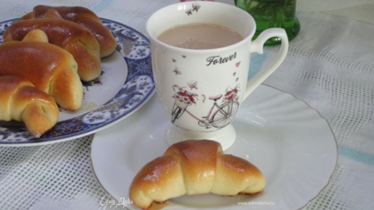 Собиралась печь плюшки с сахаром, а получились круассаны. Захотелось какой-то новой начинки. Так и придумала лимонный сахар. Если вместо молока использовать воду, тесто получится постное. Но оно очень легкое, в меру сдобное и очень вкусное. Можно готовить круассаны и из готового дрожжевого слоеного теста.