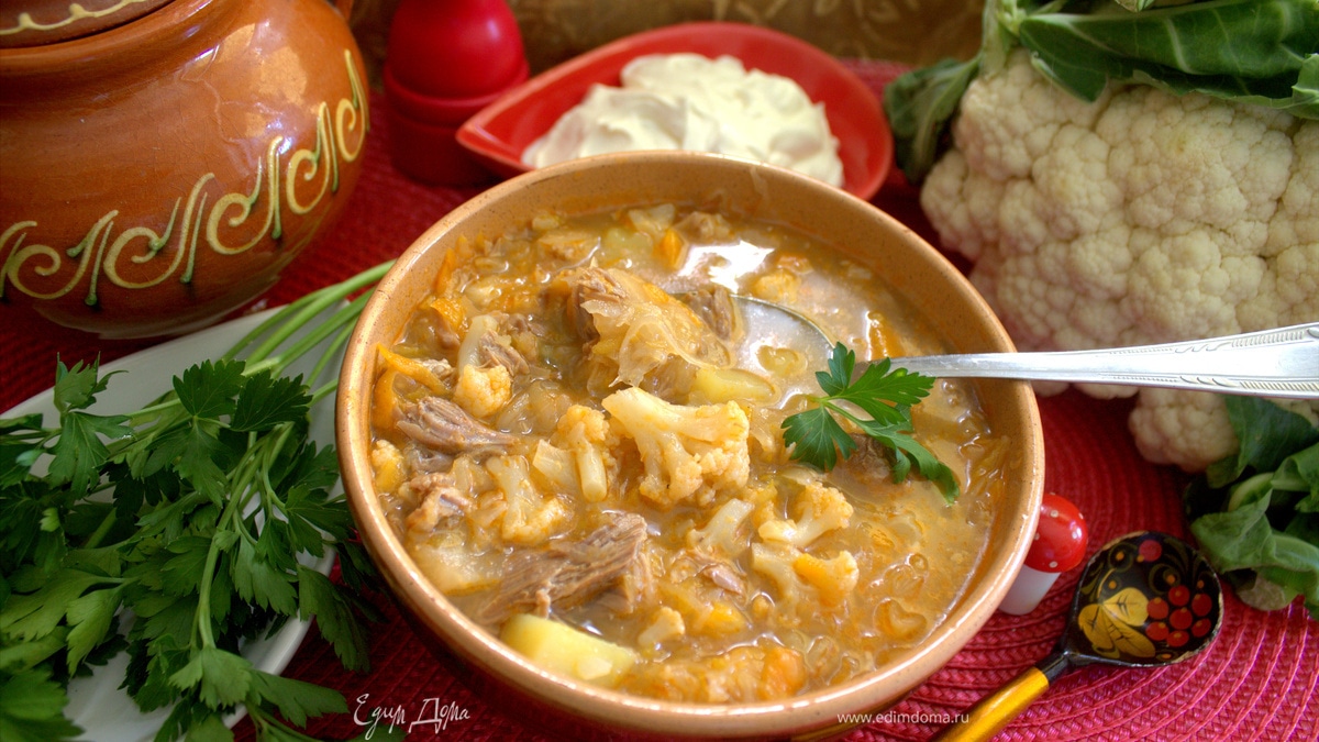 Лето начало отсчет к завершению, у нас дожди каждый день. Жара была только неделю в июне. Предлагаю от холодников вернуться к горячим супам. Сочетание свежей капусты с кислинкой квашеной — богато и вкусно!
