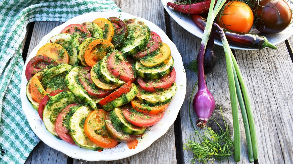 Кабачки с помидорами, чесноком и зеленью
