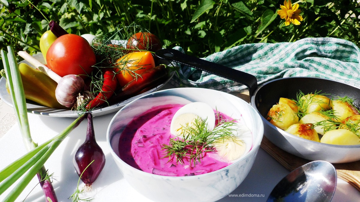 Холодные супы, легкие и утоляющие жажду, — настоящее спасение в летнюю жару. Холодный литовский борщ приготовить очень просто. В состав супа входит вареная свекла, от нее будет зависеть вкус и цвет борща. Свежие огурцы придают супу летний аромат, а зеленый лук и укроп добавляют остроты и пикантности. Все ингредиенты для супа заливаются жирным кефиром. Как и положено борщу, блюдо имеет красивый ярко-розовый цвет. Готовим!