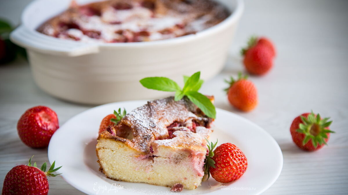 Творожная запеканка с клубникой готова! Этот простой летний рецепт может пригодиться особенно в сезон клубники и других садовых ягод.