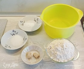 Замешиваем тесто и оставляем его на 20 минут для подъема, можно подогреть кастрюлю с водой, не доводя до кипения, и поставить миску с тестом, чтобы дно миски не касалось воды, накрыть полотенцем.