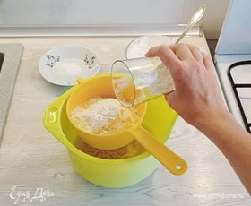 Добавляем оставшуюся муку, ее может понадобиться меньше.