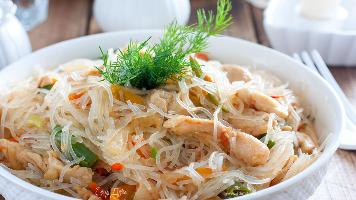 Для тех, кто хочет питаться правильно и разнообразно, стеклянная лапша фунчоза является палочкой-выручалочкой. С ней можно сочетать курицу, индейку, любое мясо, рыбу и морепродукты. Преимущество фунчозы в том, что ее не нужно варить, достаточно лишь залить кипятком. Предлагаем рецепт ПП-фунчозы с курицей в азиатском стиле.