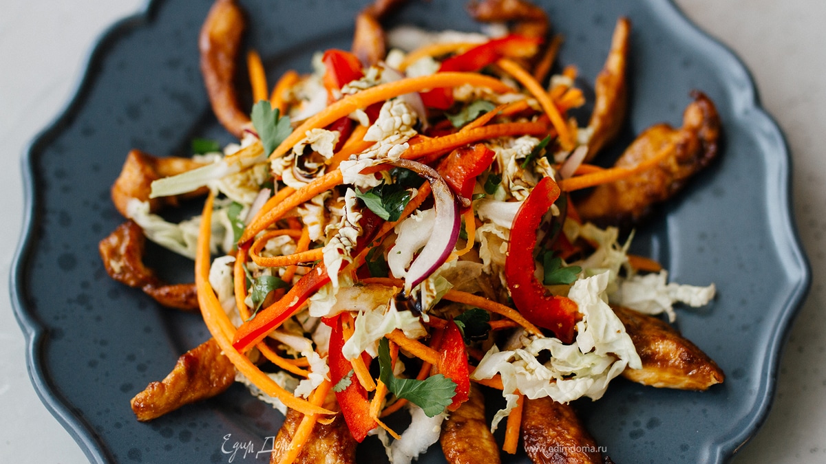 Салат с курицей в соевом соусе