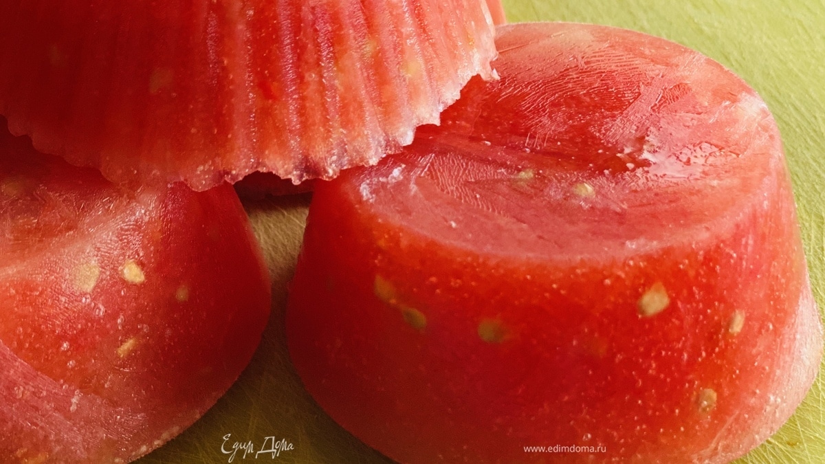 Очень простая и удачная заготовка на зиму. Я перетираю помидоры на терке, т.о. кожица остается в руках и выбрасывается, в заморозку идёт только измельченная мякоть и сок, и замораживаю в силиконовых формочках. Вот про перец не подумала ))