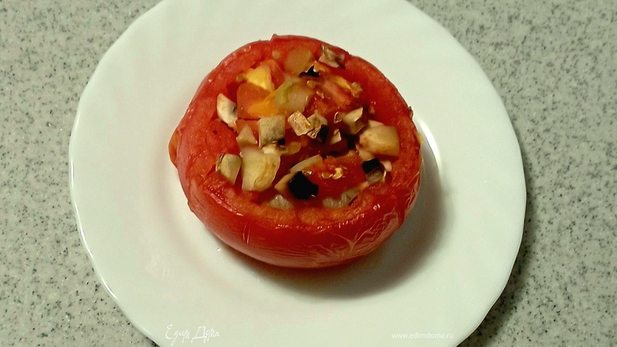 Затем чайной ложкой выложить начинку в помидоры, наполняя их достаточно плотно. Смазать противень растительным маслом, выложить на него помидоры и поставить в разогретую до 190°C духовку на 40 минут (время приготовления зависит от вашей духовки). Приятного аппетита!