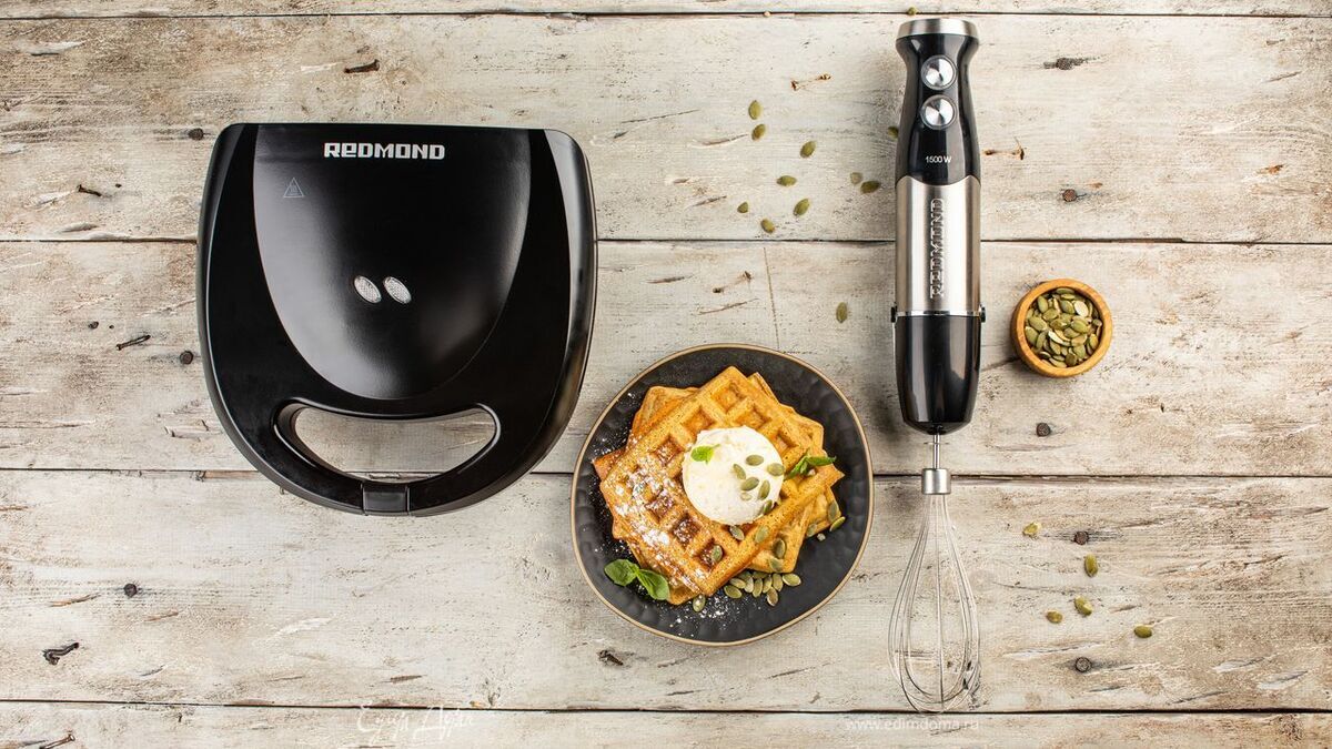 На мультипекарь REDMOND RMB611 установите панель «Венские вафли». Смазывать маслом поверхность не нужно, сразу выкладывайте тесто на антипригарную панель. Приготовьте вафли. - Шаг 7