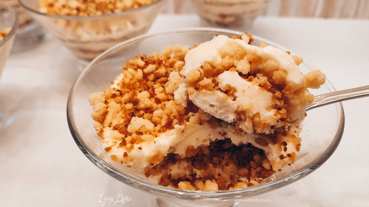 Первым слоем выложить крошку, сверху — равномерно крем. Так чередовать, пока все не закончится. Верхний слой должен быть из крошки. - Шаг 5