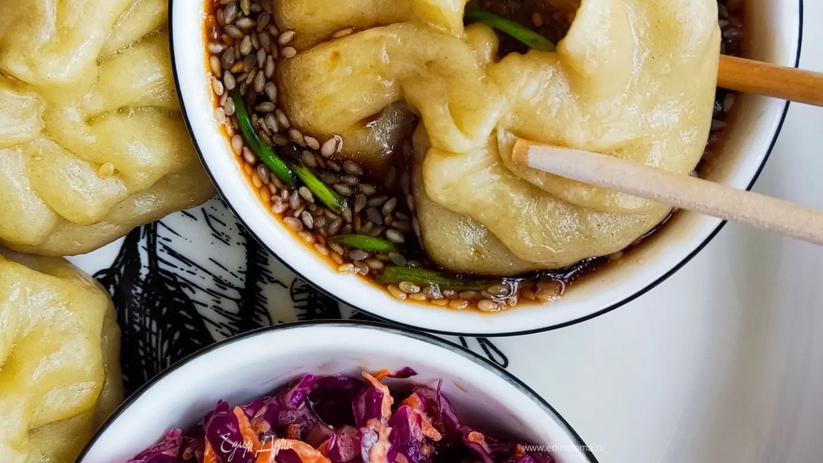 - Шаг 3Тесто нарежьте на равные части, раскатайте кружочки и положите на них начинку. Защипните края и выложите на разогретую скрвородку (заранее добавьте туда немного растительное масла). Когда низ подрумянится, добавьте воду и накройте крышкой. Через 15 минут все готово! В соевый соус добавьте немного кунжута и зеленого лука. Приятного аппетита!