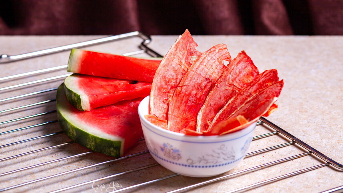 Арбуз — яркая, сочная, ароматная, но скоропортящаяся большая ягода. В целом виде любимое летнее лакомство может храниться в холодильнике не дольше 2 недель, а в разрезанном — 2–3 дня. Чтобы полакомиться арбузом зимой, его можно завялить. Сделать это очень просто, если у вас дома есть электросушилка. Вяленая ягода сохранит свою сладость и пользу. Мягкие ароматные кусочки можно давать детям вместо чипсов, брать на работу или учебу в качестве полезного перекуса, подавать к чаю вместо конфет. Делимся универсальным рецептом заготовки вяленых арбузов в сушилке на зиму.