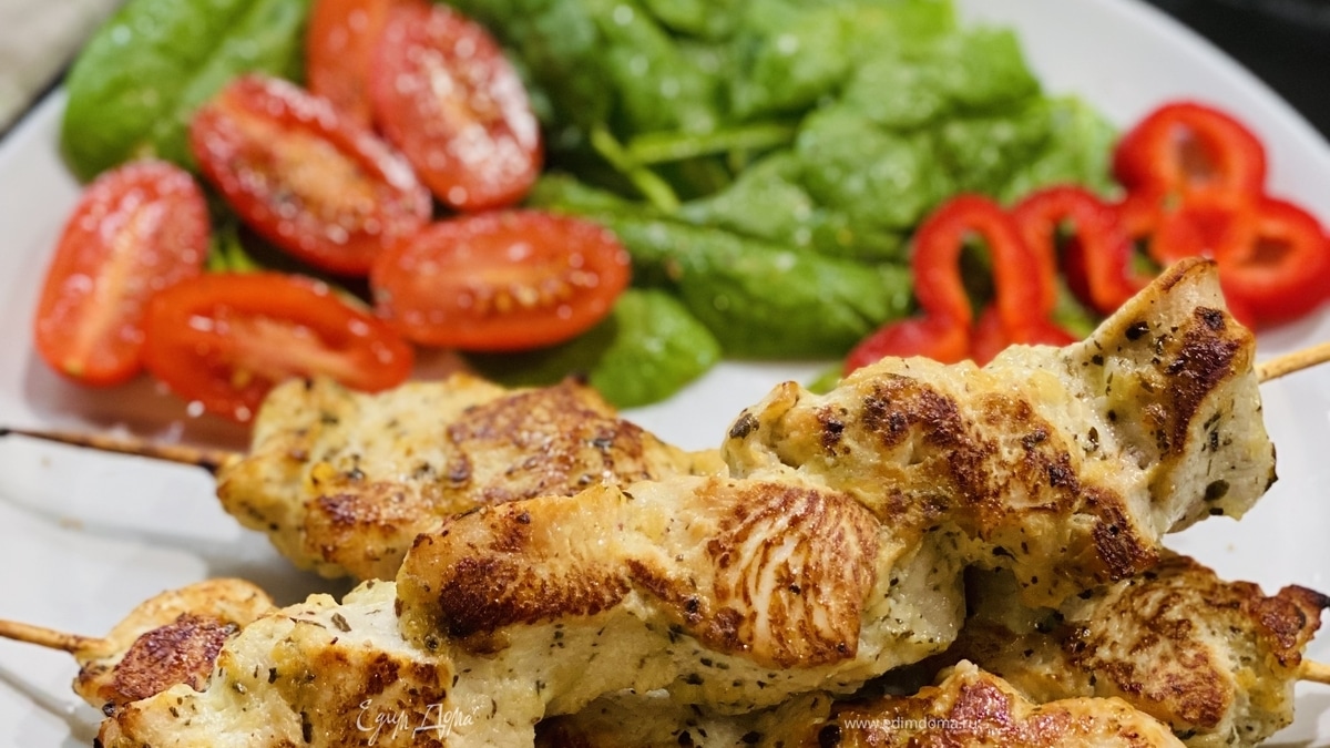 - Шаг 1Луковицу натереть на терке, смешать с солью, специями и оливковым маслом. Замариновать на 30 минут в этом соусе индейку, нарезанную крупным кубиком.