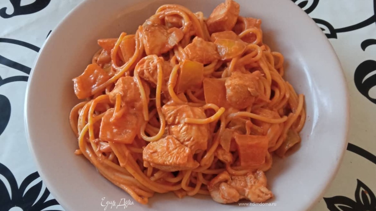 Спагетти с курицей в сливочном соусе