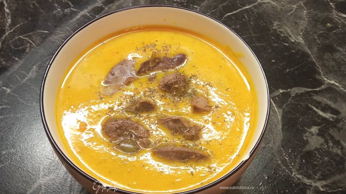Тыквенный суп с куриной печенью