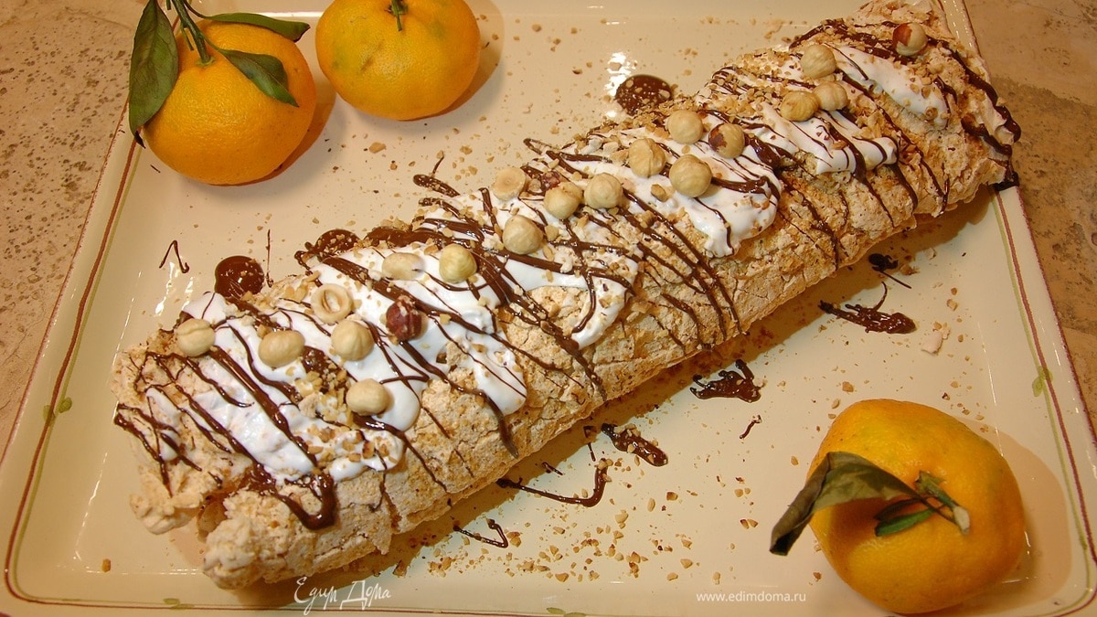 Зимний меренговый рулет с мандаринами