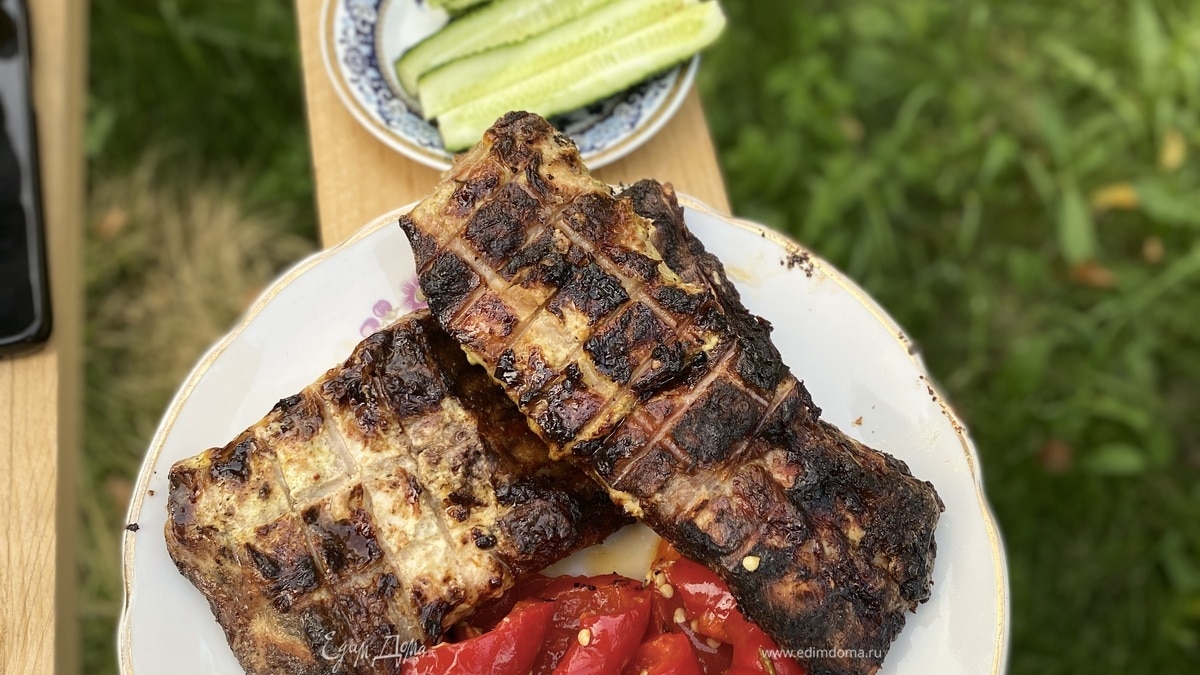 - Шаг 2Достаем ребрышки из холодильника. Выкладываем их на предварительно разогретую сковородку с небольшим количеством масла и обжариваем на среднем огне. Ребра можно приготовить над углями или запечь в духовке. Обжариваем ребра со всех сторон, постоянно переворачивая, в конце обжаривания огонь увеличиваем и доводим ребрышки до готовности. Обжаренные ребрышки выкладываем на тарелку, обильно посыпаем зеленью и подаем с любимыми соусами.