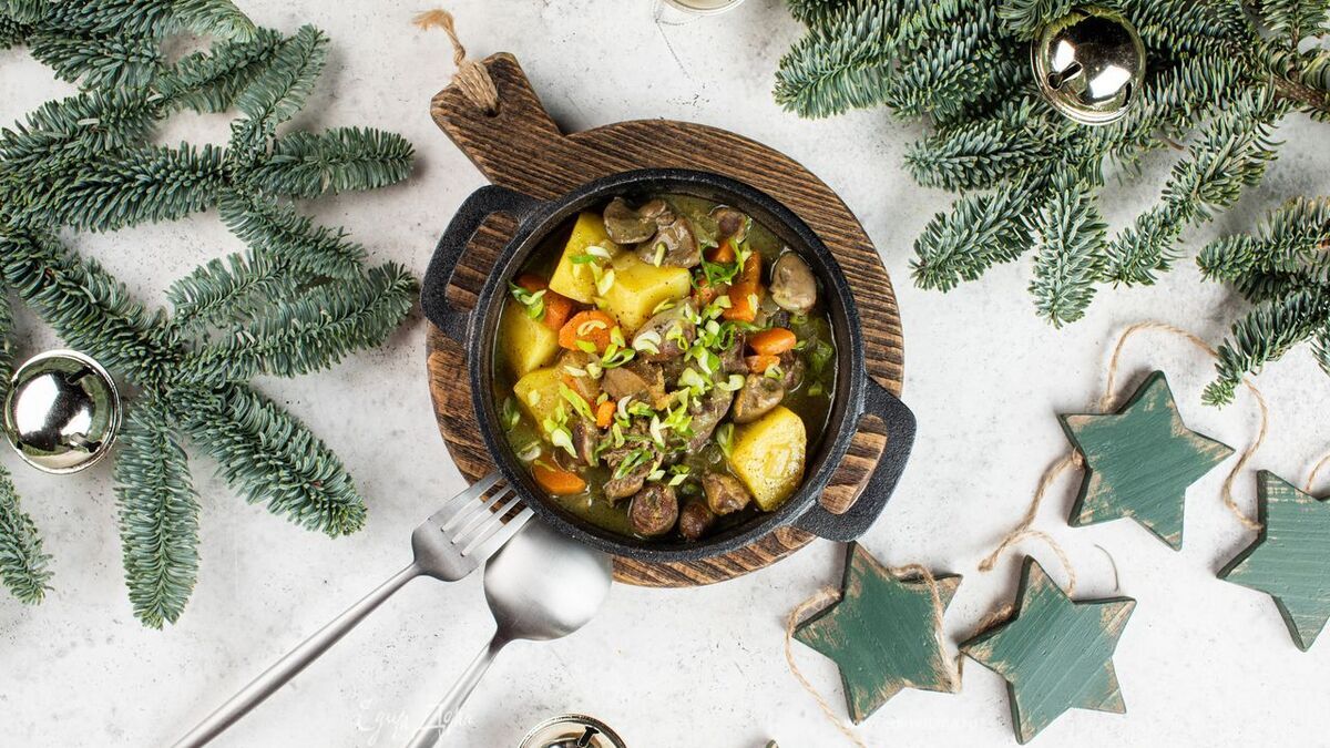Жаркое с гусиными потрошками