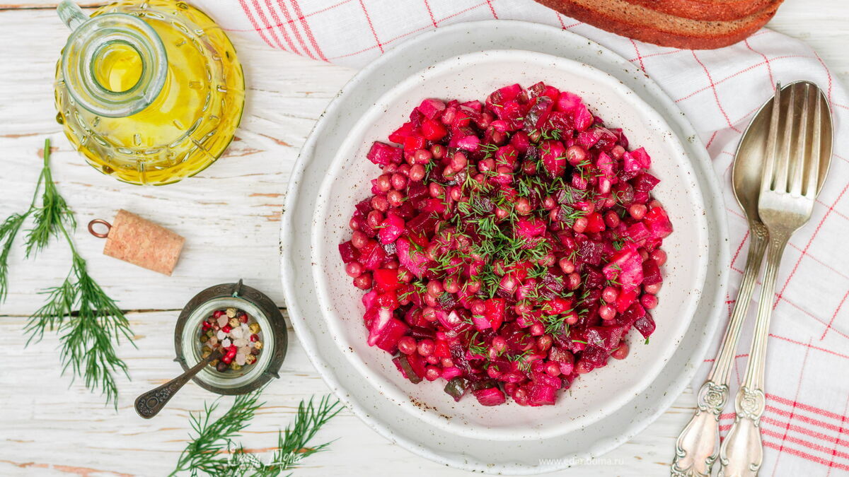 Этот популярный салат все готовят по-разному, но винегрет с зеленым горошком и огурцами — один из классических вариантов яркого салата. Он готовится за 20 минут — главное заранее сварить овощи. Предлагаем пошаговый рецепт с фото.