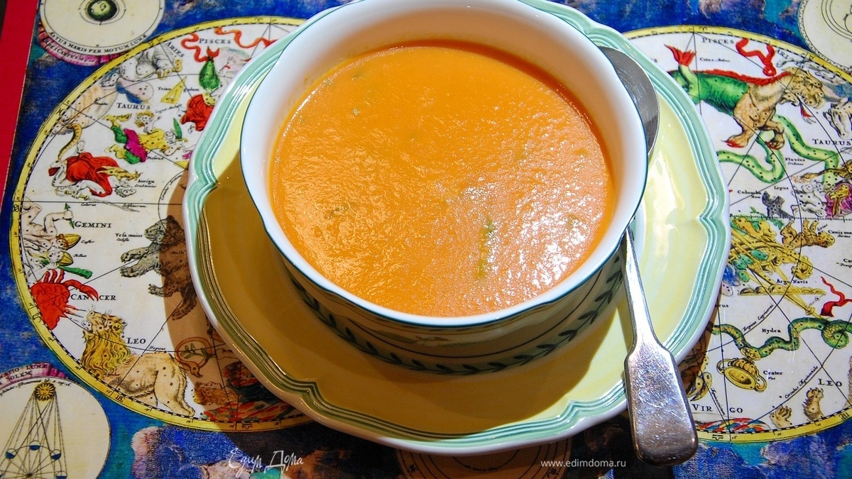 Такой суп — вещь диетическая, подходит для вегетарианцев, для тех, кто соблюдает пост, потому что здесь нет никаких животных жиров, но при этом все очень интенсивно, насыщенно. Лично я готовлю его и зимой, и летом, причем свежим помидорам предпочитаю те, что из банки, — они больше подходят для соуса или супа. Вместо овощного бульона можно взять просто воду, но с бульоном получается вкуснее и, кстати, полезнее. Кокосовое молоко легко заменяется сливками — с ними хорошо дружат и сладкий перец, и помидоры.