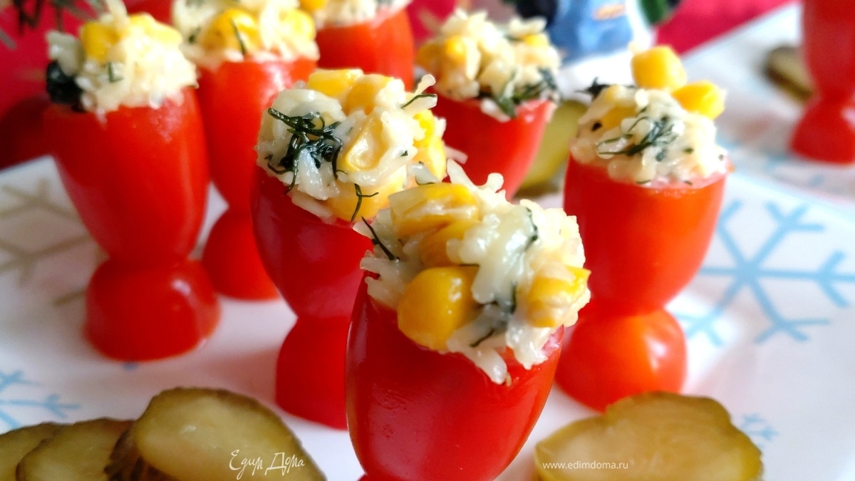Теперь самое главное в рецепте — подача. Нужны черри удлиненной формы. Отрезать у каждой помидорки треть. - Шаг 6