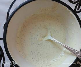 Сначала готовим соус. Смешиваем 2 ст. л. сметаны с 2 ст. л. горчицы. Солим по вкусу и все перемешиваем.