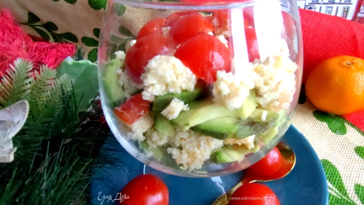 Любите сырный салат, но хочется его разнообразить? Добавим к нему авокадо и подадим в широком бокале.