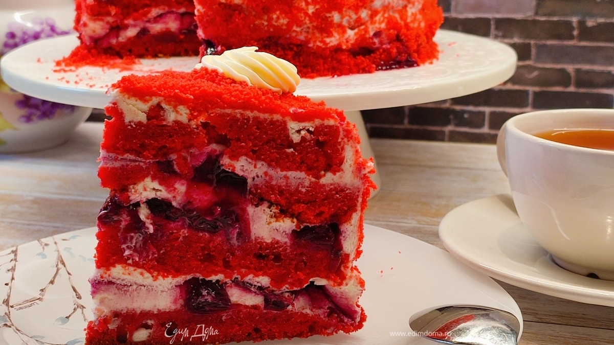 Торт «Красный бархат» с вишневой начинкой