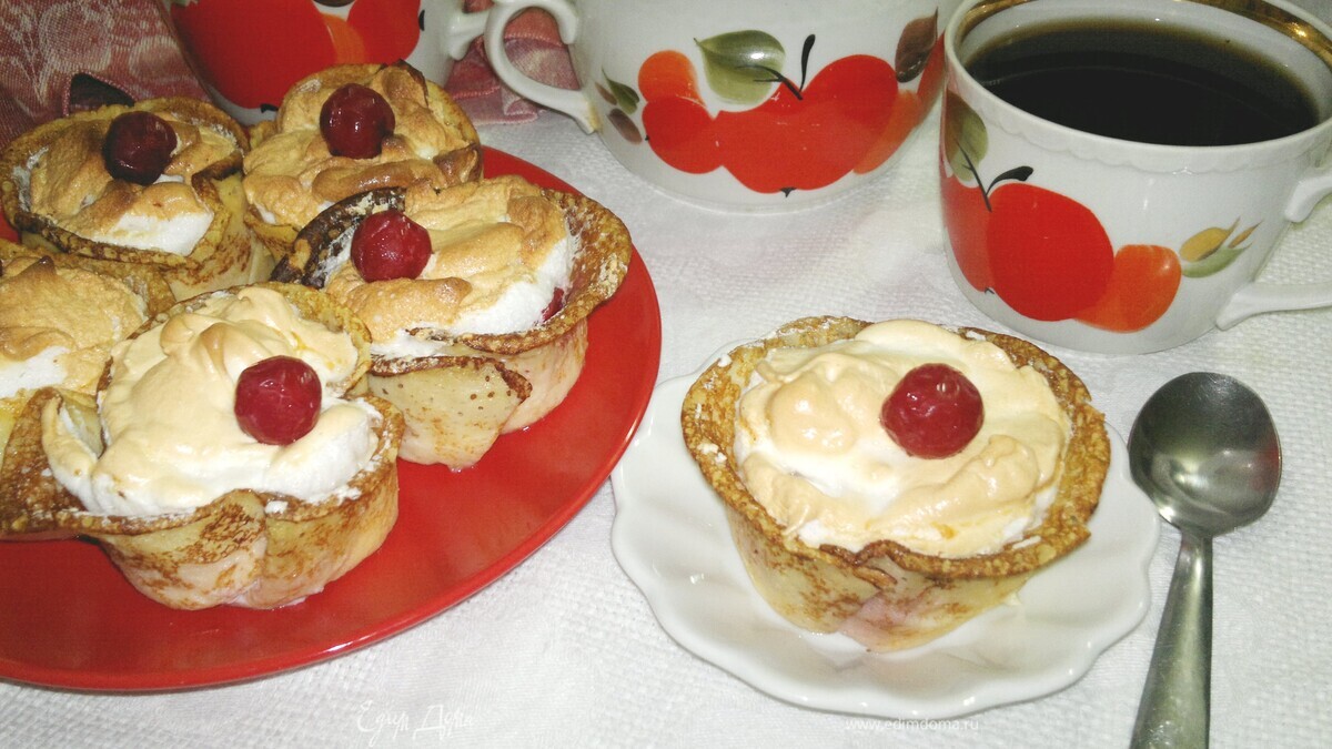 Формочки с блинчиками выложить на противень и поставить в духовку, разогретую до 180°С, на 8–10 минут, чтобы меренга подрумянилась. - Шаг 11