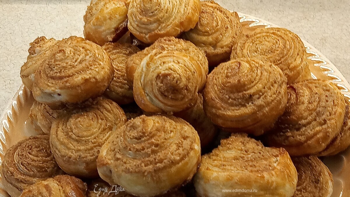 Улитки из слоеного теста со шкварками