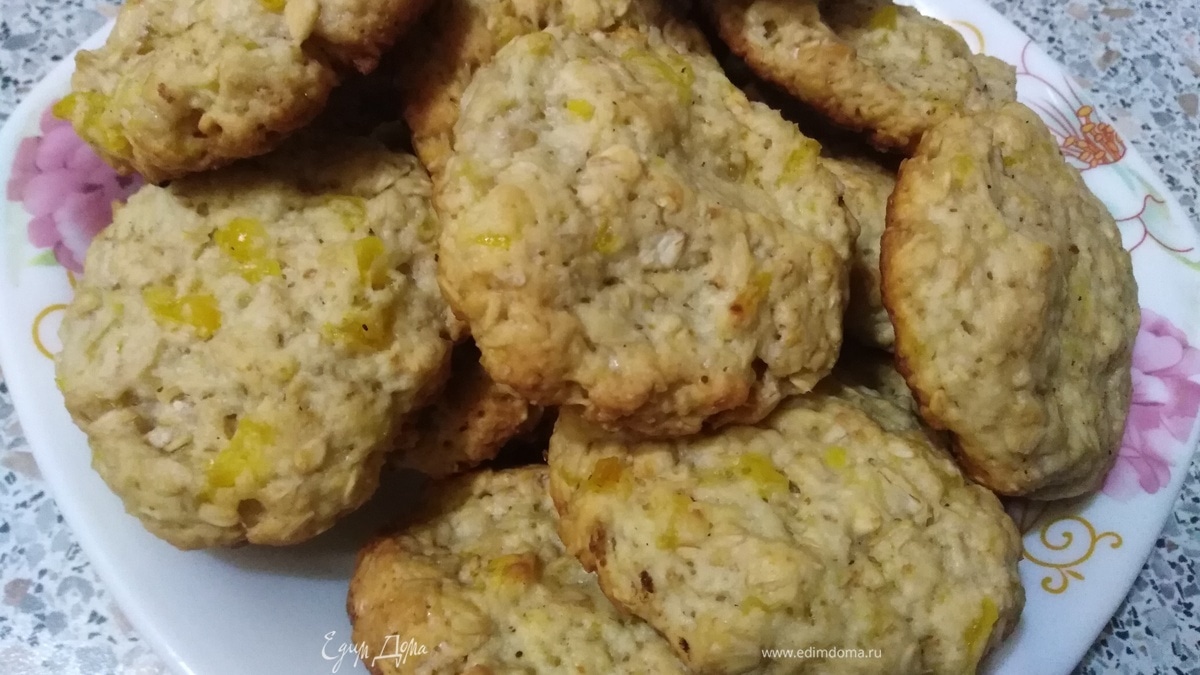 К муке всыпать разрыхлитель, сахар, овсяные хлопья и мелко нарезанный кумкват. Перемешать. - Шаг 2