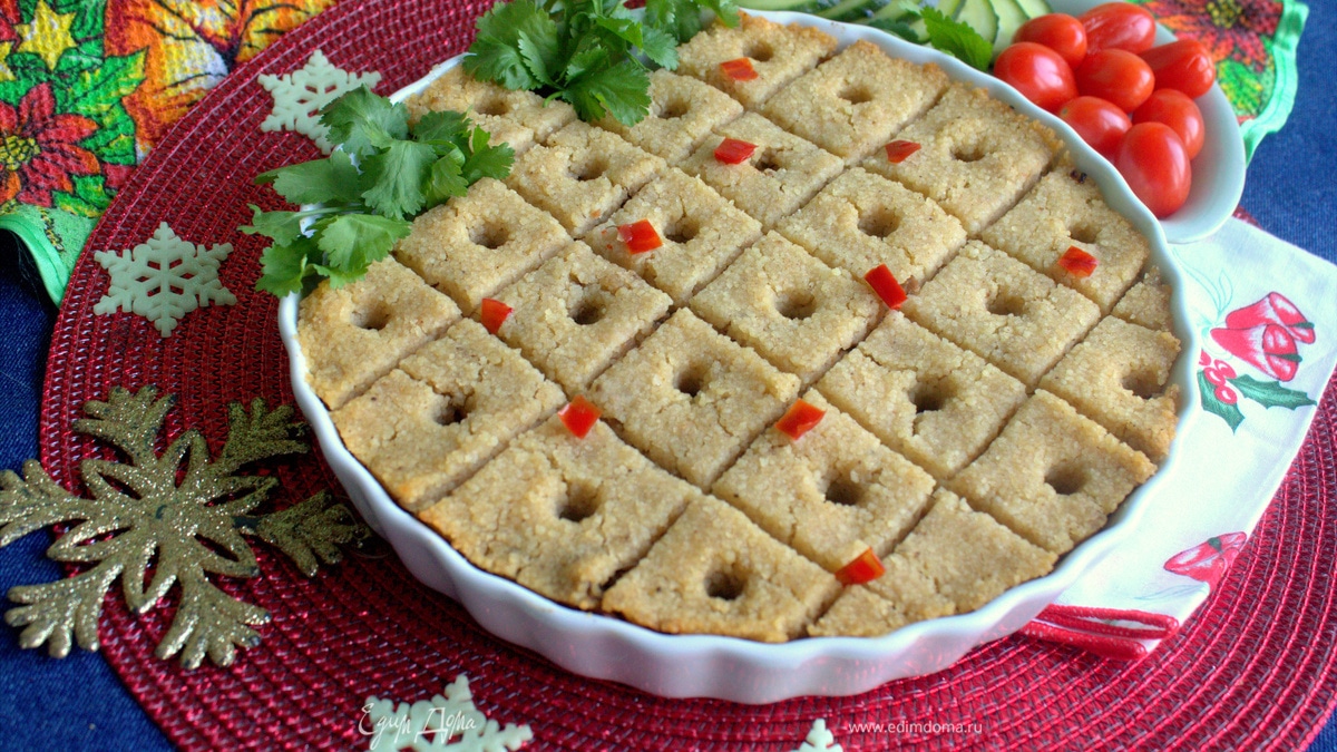 Закрыть фарш остальным кускусом, надрезать на ромбики и сделать ямки деревянной ложкой. - Шаг 10