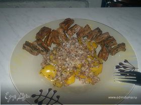 Восточное блюдо кибби. Это ленивый вариант в виде запеканки. Еще подают мини-пирожками: тесто плотно сжимают руками и жарят в масле (начинка: фарш с кедровыми орехами). Кускус можно заменить булгуром.