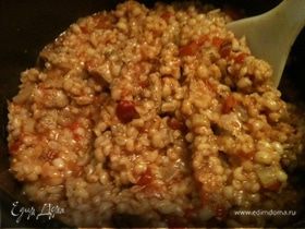 Утрамбовать на дно половину кускуса. Сверху — фарш с луком. - Шаг 9