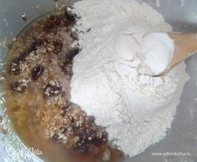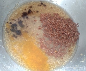 В горячее масло всыпать отруби, перемешать, дать набухнуть.